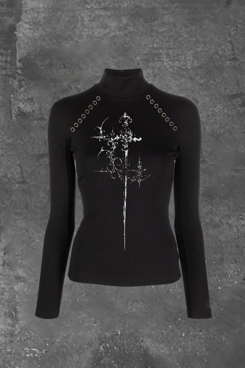 تیشرت آستین بلند یقه اسکی گوتیگ پانچ اسپایک صلیب تتو پینترستی
