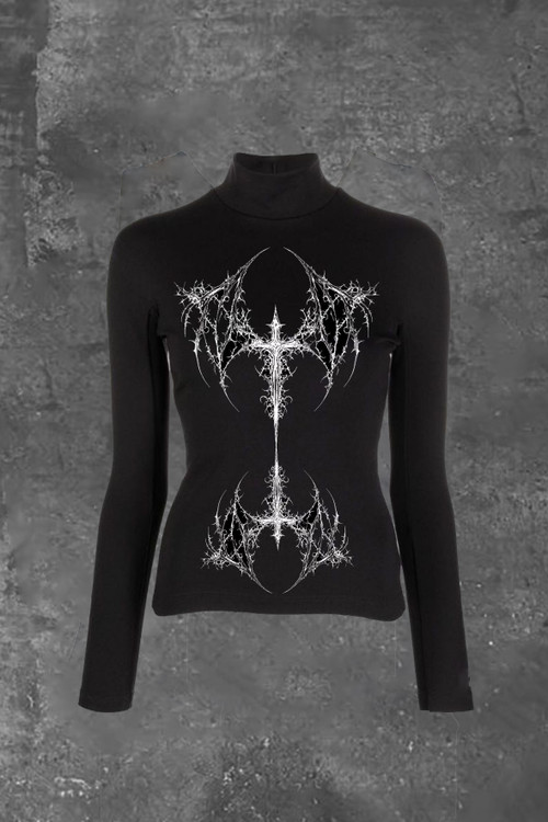 تیشرت آستین بلند یقه اسکی گوتیگ صلیب تتو پینترستی