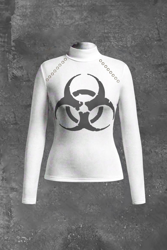 تیشرت آستین بلند یقه اسکی گوتیگ biohazard پانچ اسپایک صلیب تتو