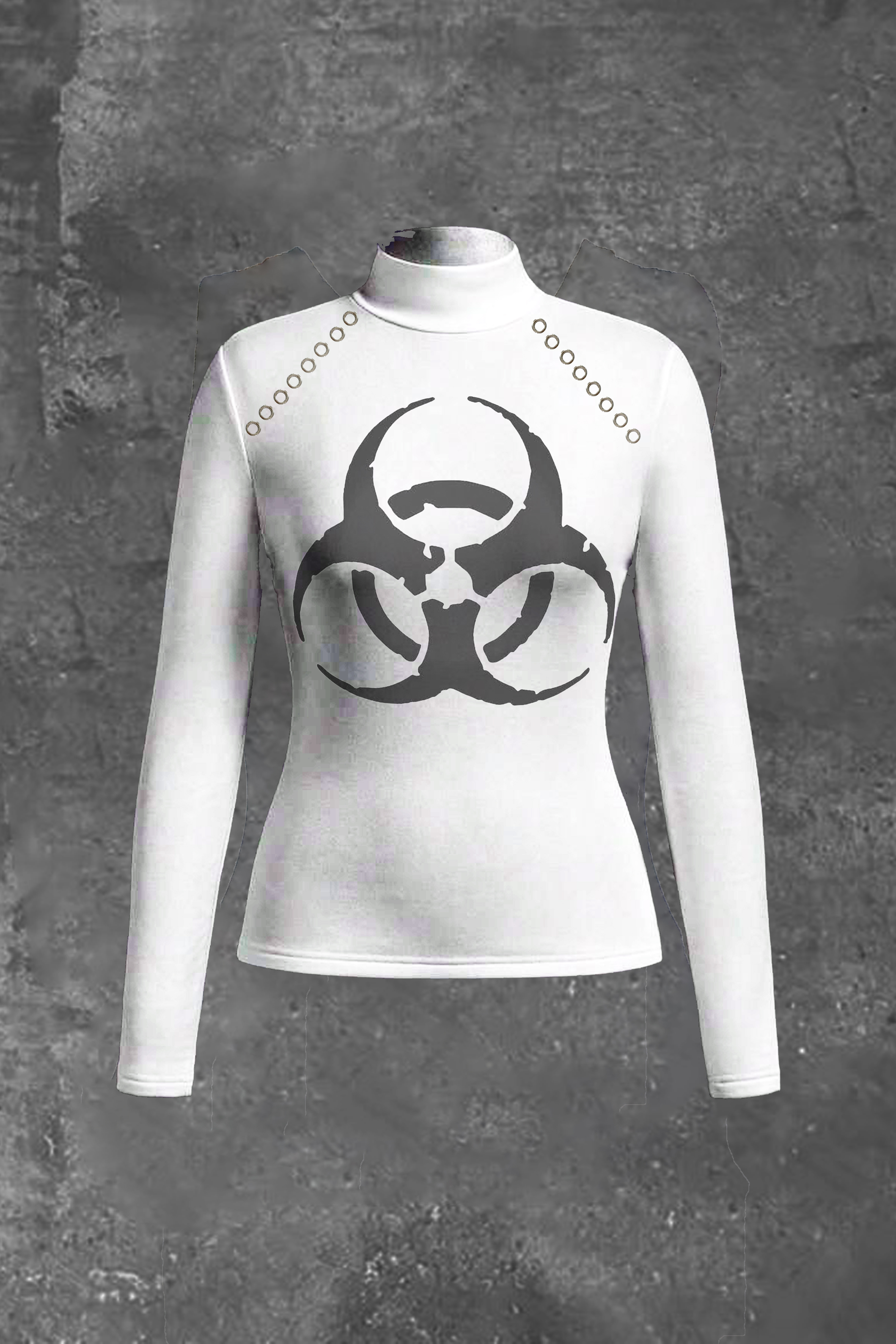 تیشرت آستین بلند یقه اسکی گوتیگ biohazard پانچ اسپایک صلیب تتو